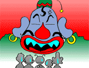 | わしは今から四千年前、悪ささしたため、お釈迦様にツボの中に閉じこめられたんだべ またお釈迦か!余計なことしくさって! |