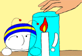 『ハイ! すると中の酸素がなくなって火が消えます!』